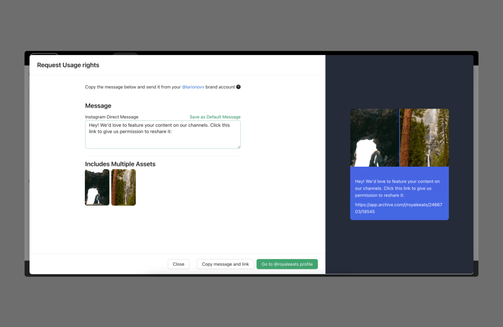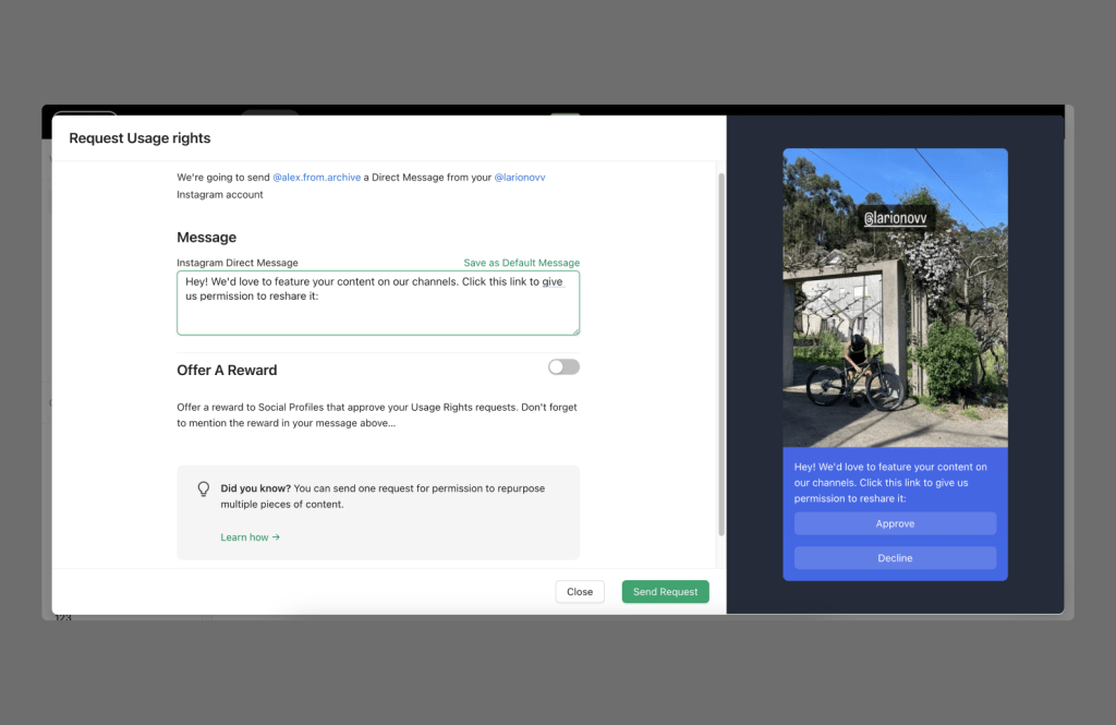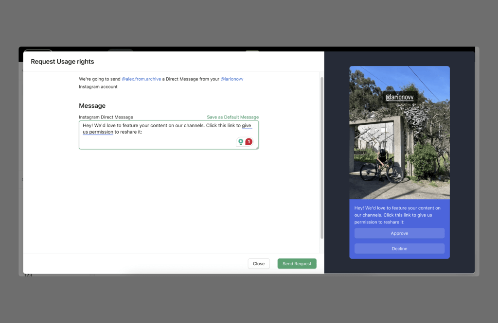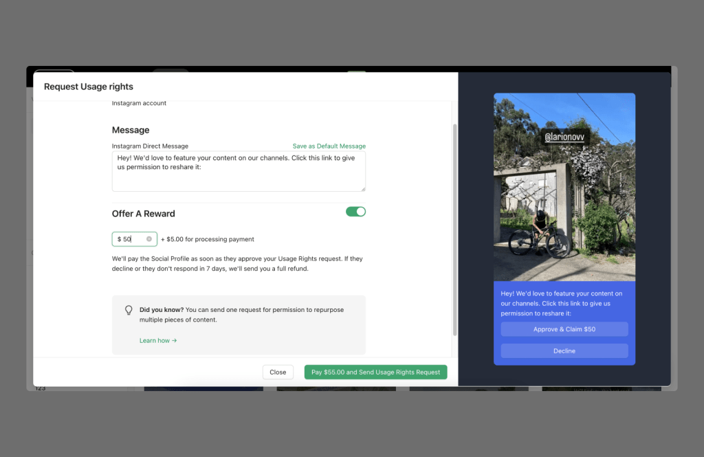 To start, we’re introducing a simple automation for customers to request usage rights via Direct Message and track progress on our Platform.