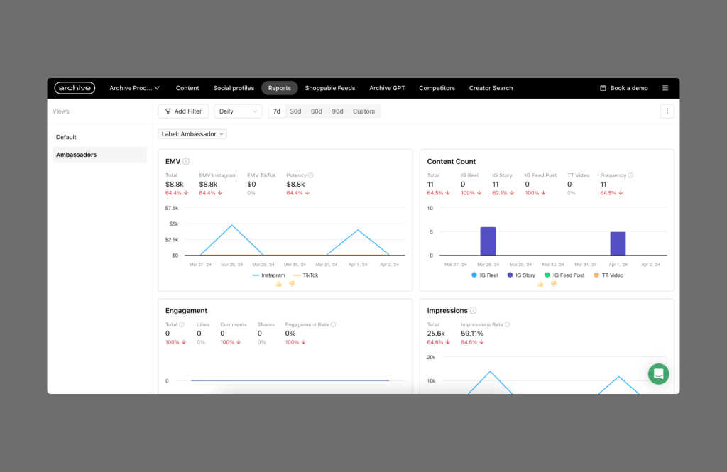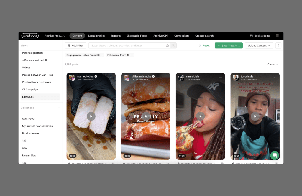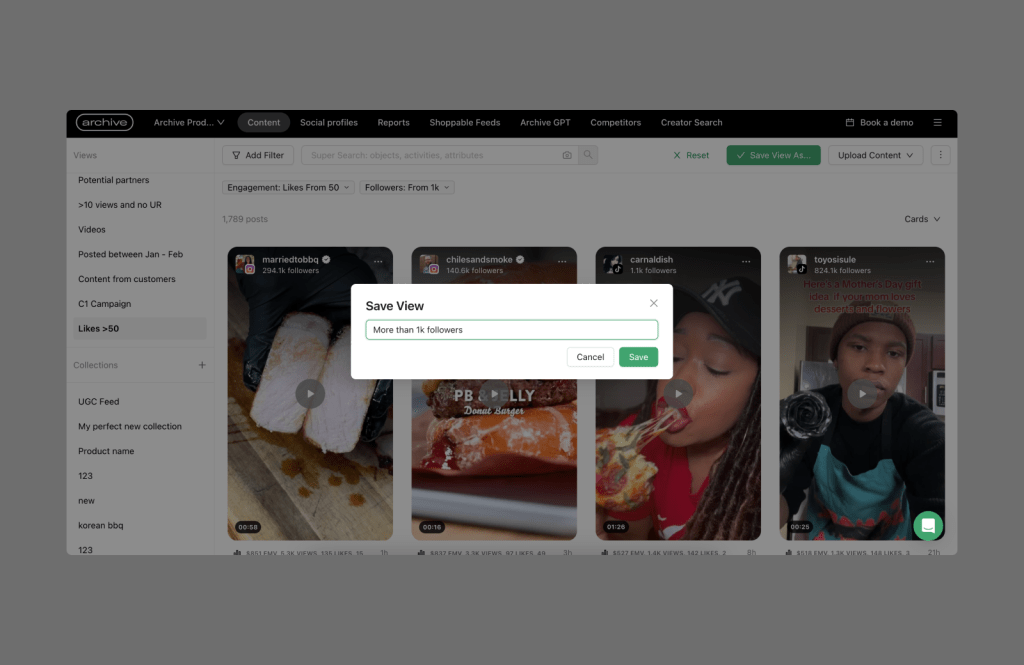 Customers can easily apply saved views for features like Reporting. This allows them to quickly build simple workflows, such as reviewing content after running a specific campaign and reporting on the results.